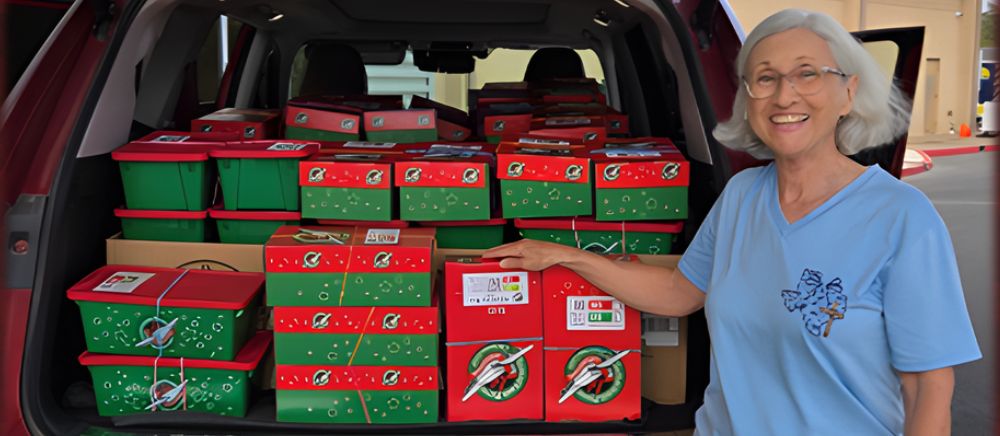 Items included in the box include school supplies, hygiene items, toys, and a WOW item, such as a soccer ball, fishing kit, toolbox, stuffed animal, doll, musical instrument, or large toy. Some churches and individuals collect items year-round. One 101-year-old lady sewed a dress a day to put in the boxes. You’re never too old or too young to be involved.