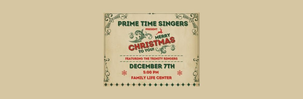Date Dec 07 2025 Time 5:00 pm ChristmasConnectSr AdultWorship Merry Christmas to You Family Life Center — Prime Time Singers will be joined by the Handbell Choir Share this event + Add to Google Calendar + iCal / Outlook export